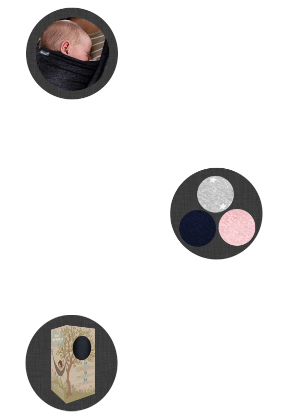 The baby sling is not only a very useful support. With our five colors and many different print options, it becomes a beautiful accessory, too.